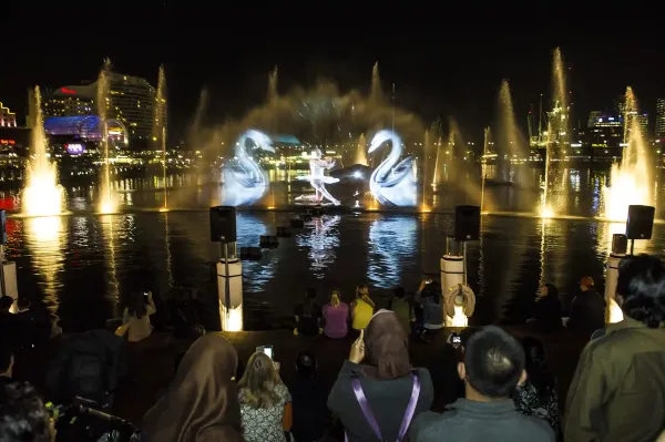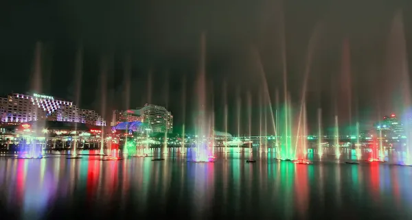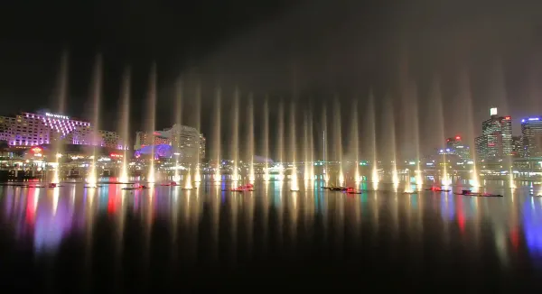 L'incroyable show aquatique à Darling Harbour présente plusieurs écrans d'eau, et d’impressionnantes fontaines dansantes