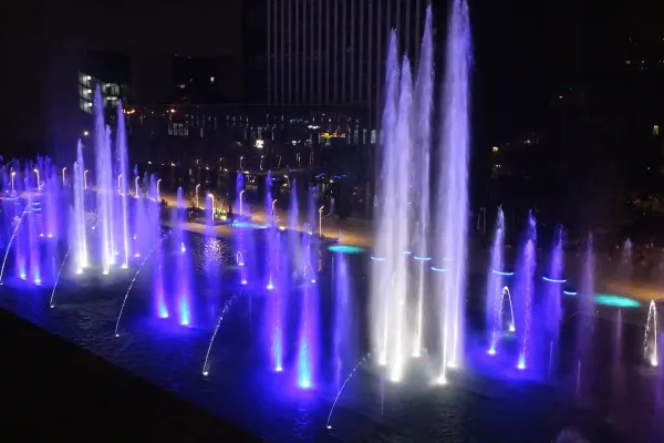 Le square central de ce nouveau quartier est entouré des édifices les plus hauts du secteur : nous devions de ce fait penser un show aquatique imposant tout en gardant des hauteurs d’effets d’eau qui permettent aux spectateurs proches de la fontaine de pouvoir profiter de toute la longueur du spectacle.